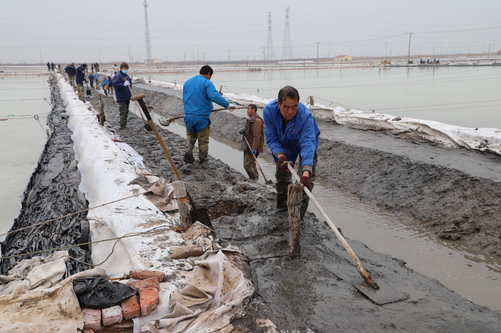 在新河制鹽分公司鹽田地頭的冬準會戰(zhàn)現(xiàn)場,人頭攢動,工人們正動作嫻熟的進行澆水、翻泥、踩實、做埝、整平……,鹽工們?nèi)幭冗M位,手腳不停揮鍬挖泥呈現(xiàn)出你追我趕、比肩發(fā)力的勞動場景。一條條溝道改造、格堰修整等亮化灘場文明建設(shè)煥然一新,一幅“人勤春早”的美麗畫卷徐徐展開。