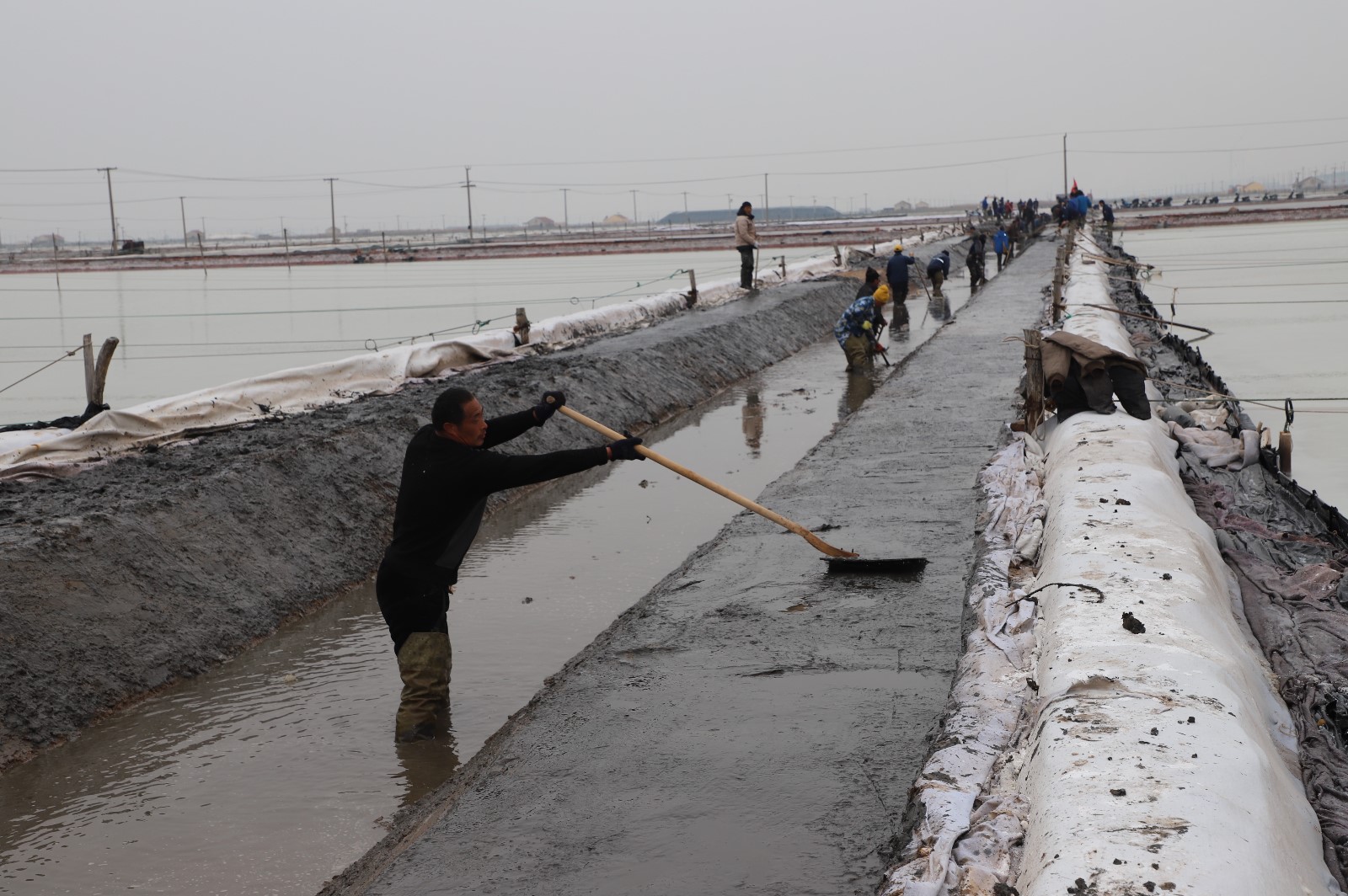 “冬準工作已接近尾聲,在春扒工作開始之前,我們集全公司之力在做好保鹽保鹵工作的基礎(chǔ)上,加強對排鹵及回鹵溝道改造等亮化灘場文明建設(shè)工程,完善塘洼清淤工程,打造完整的生態(tài)制鹽系統(tǒng),為原鹽豐產(chǎn)豐收、提質(zhì)增效打好基礎(chǔ)?!毙潞又汽}分公司支部書記王超介紹道。