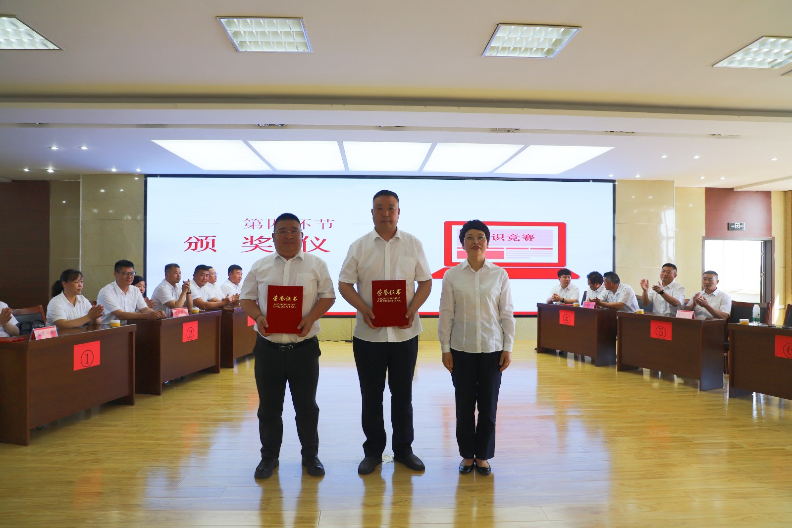 決賽過(guò)程緊張而激烈,選手們表現(xiàn)出高度的參與熱情與流暢的應(yīng)答能力。競(jìng)賽形式包括必答題、搶答題、單位負(fù)責(zé)人答題及觀(guān)眾互動(dòng)題等,分?jǐn)?shù)隨著比賽的推進(jìn)而逐漸攀升。在搶答環(huán)節(jié)中,部分代表隊(duì)因搶答違規(guī)被扣分,而部分隊(duì)伍則采取穩(wěn)健策略,雖搶答次數(shù)不多,但得分依然可觀(guān)。值得一提的是,各參賽單位負(fù)責(zé)人現(xiàn)場(chǎng)參加答題比賽,所得分?jǐn)?shù)算入?yún)①愱?duì)伍的總得分。